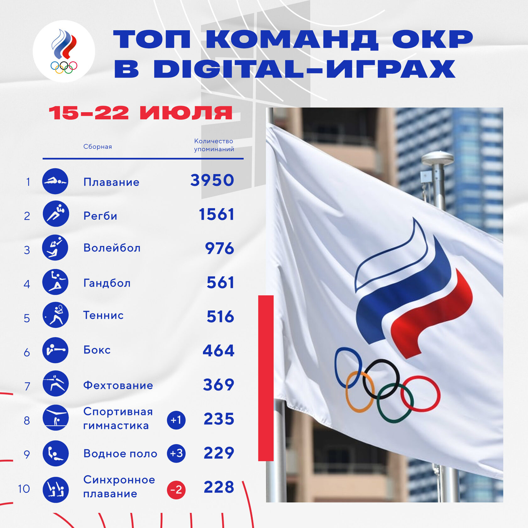 Главными претендентами на попадание в топ рейтинга прямо сейчас являются наши прекрасные гандболистки и теннисисты. Владлена Бобровникова и Анна Сень провели замечательный инста-дэй в соцсетях ОКР. Также обсуждался прилет действующих олимпийских чемпионок в Токио. И на этих Играх наши девушки являются одними из главных фавориток, а значит еще не раз дадут новостные поводы для медиа.